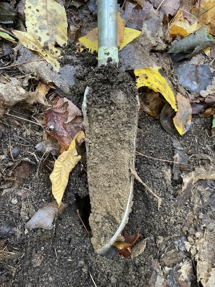 In North America, particularly in New England, the upper Midwest, and Canada, earthworms were eradicated during the last ice age. These forests then evolved with thick, organic soil layers made out of centuries worth of accumulated decayed leaf litter and wood. The top layer of that organic soil is called the O Horizon—it’s a soft, fluffy matter that sits right under the freshest leaf litter.